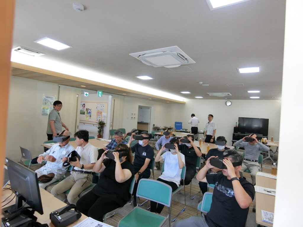 休憩をはさみ、防災グッズの展示、VR体験をしました。