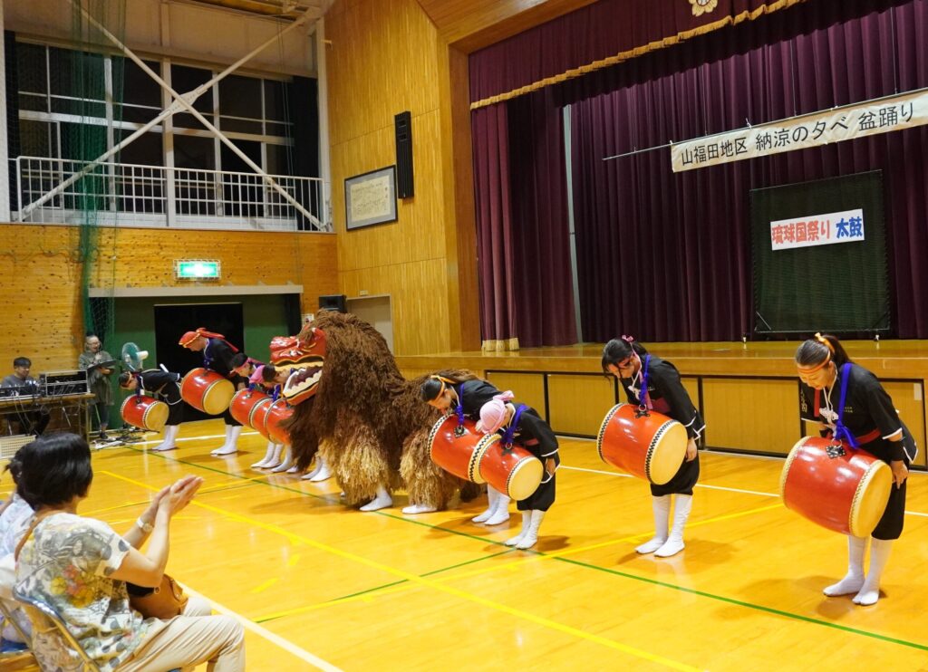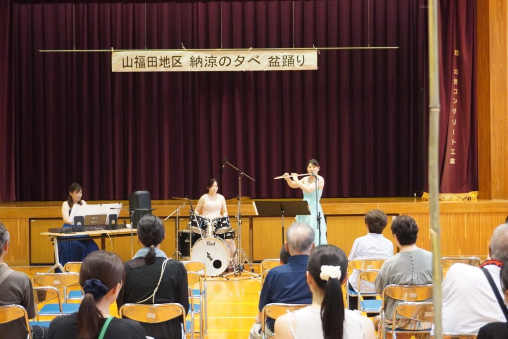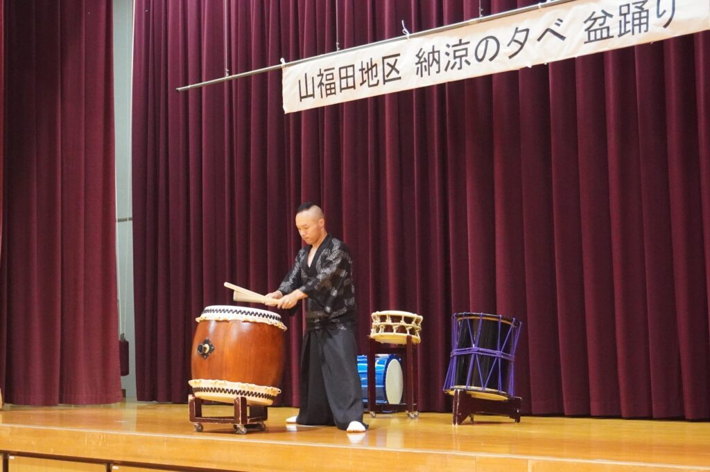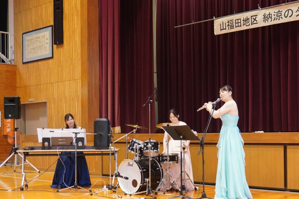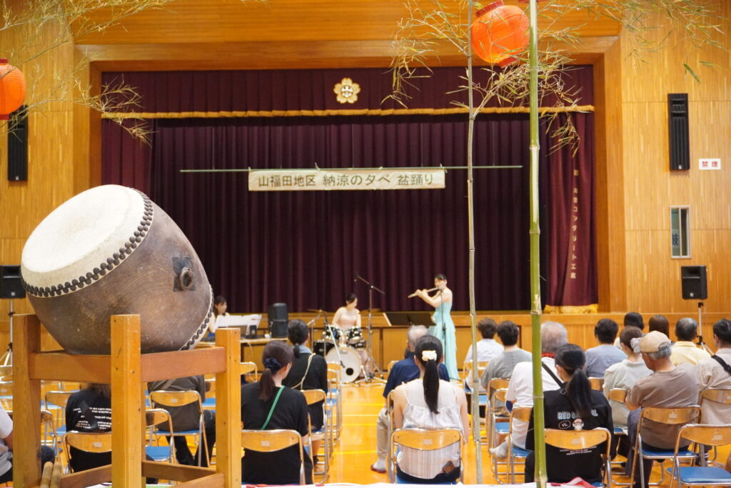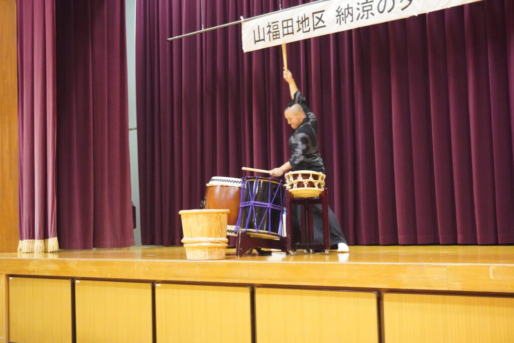 アトラクションでは、フルートとピアノの美しい音色を届けてくれた「ベル・フルール」さん、そして空手や舞踊の動きを取り入れた迫力の創作エイサーを披露した「琉球国祭り太鼓」さんが会場を盛り上げました。さらに、飛び入りで三原和太鼓演奏者・中野歩さんも出演し、力強い演奏で大きな拍手が起こりました。