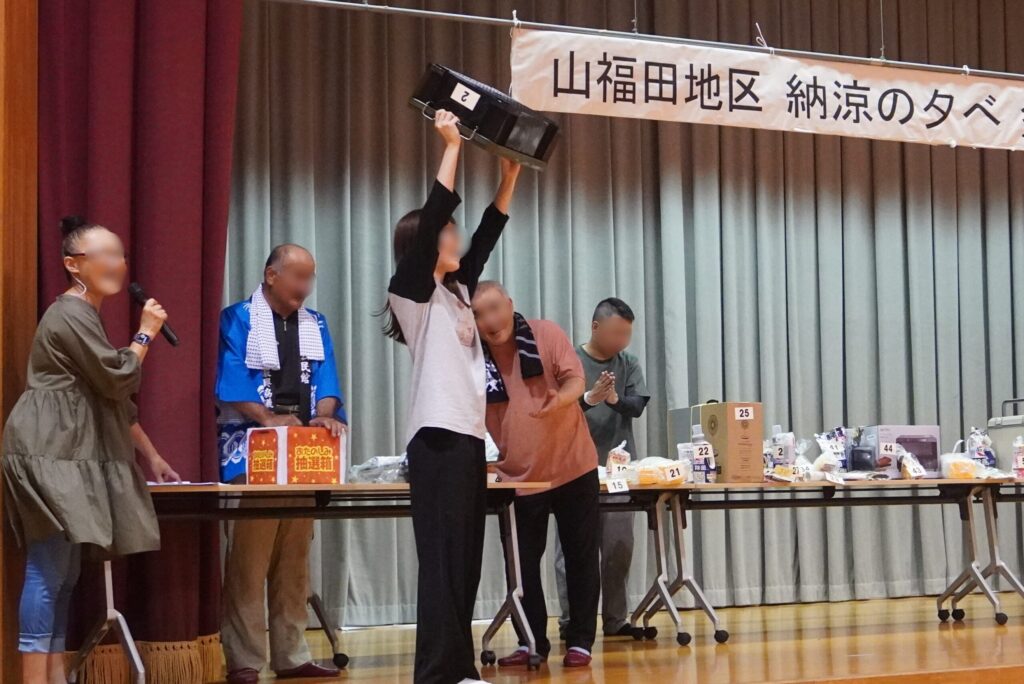 盆踊りでは「七つ拍子」と「扇子おどり」で会場が一体となり、最後のお楽しみ抽選会まで笑顔と歓声が絶えない、心に残る夏祭りとなりました。